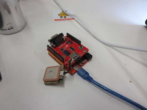 El LED incorporado en el escudo se utiliza para indicar cuando es registro de la Junta y el otro para cuando está bloqueado el GPS.