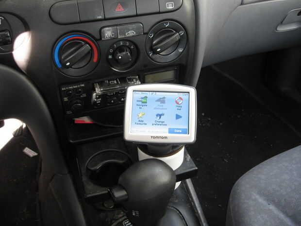 Después de buscar en la Web, he encontrado un tipo de montura que puede ser utilizado en el sostenedor de taza del coche. Cuestan aproximadamente $20 buck para tal una pieza de plástico. Eso es cuando me decidí a probar y hacer mi propio.