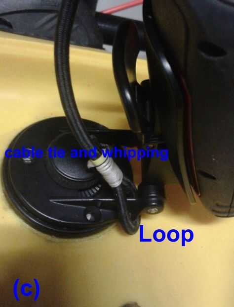 - Coloque la sección desmontable en su montura y medir la suficiente cuerda de amortiguador auxiliar para llegar a un punto de Unión en el Kayak cerca del Monte.