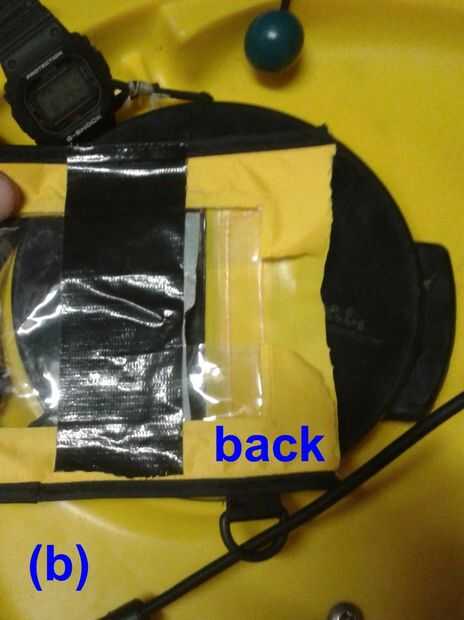 - Cortar un par de tramos de cinta y reforzar los bordes de la parte inferior, incluyendo cualquier corte posterior necesitada. (imagen b)