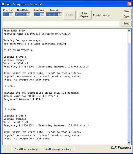 Todos los archivos son con impresión horaria mediante un código de tiempo de unix en el monitor serie.