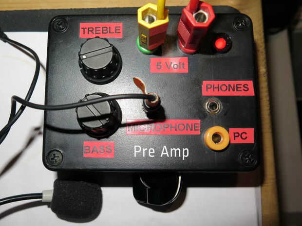Diseñé mis propio con el bajo, controles de agudos y volumen. Sin embargo hay un montón de diseños de pre-amplificadores en la web.