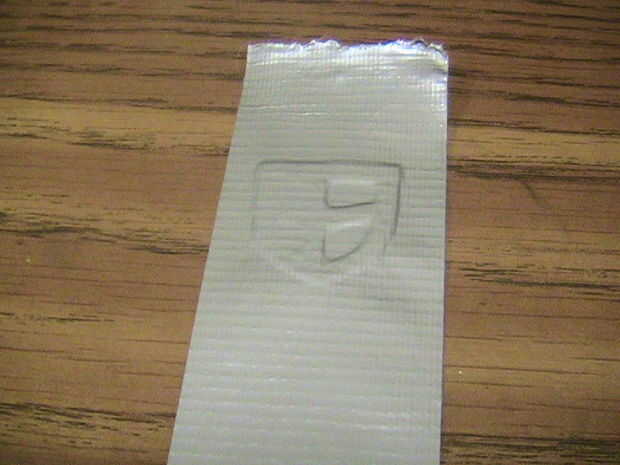 Ahora que usted tiene su diseño de corte es tiempo para insertar en su proyecto. Coloque una tira de cinta con el lado adhesivo hacia arriba y coloque la figura en la parte superior. Colocar cinta más encima de todo, el lado pegajoso hacia abajo, y el diseño del emparedado. Ahora usando la parte carnosa del dedo, presione la cinta alrededor de los bordes de la figura. Esto debe salir de forma elevada, definida frente a la cinta.