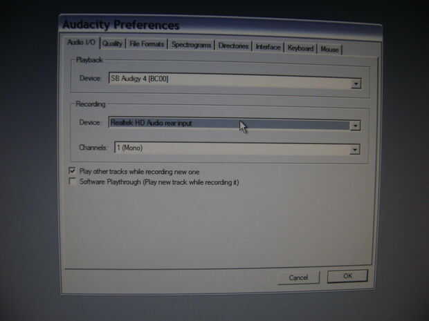abrir el Audacity. Haga clic en el editar menú desplegable en la parte superior y luego preferencias, que se encuentra en la parte inferior. en la primera pestaña eligió el dispositivo de grabación conectado a. Sólo debe haber unos cuantos, así que si no sabes prueba a todos hasta llegar a la derecha. Su básicamente listo para grabar.