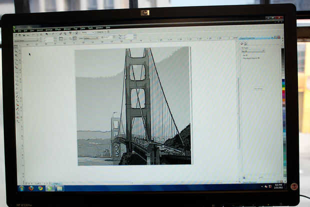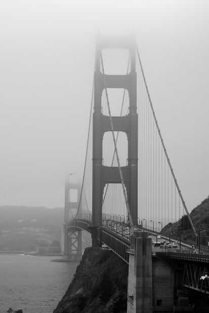 Para nuestro ejemplo hoy en día, tomé una foto del puente Golden Gate, tomé un tiempo atrás. La imagen ya está en blanco y negro, por lo que podemos omitir la conversión de escala de grises: sin embargo, recomiendo convertir tu imagen en escala de grises, esto le da más control sobre qué partes de la imagen están oscura o clara. Sin embargo, para enfatizar la forma, utiliza filtros de «Posterizar» de Photoshop para obtener una imagen más quantized con muy pocos pasos de la escala de grises.