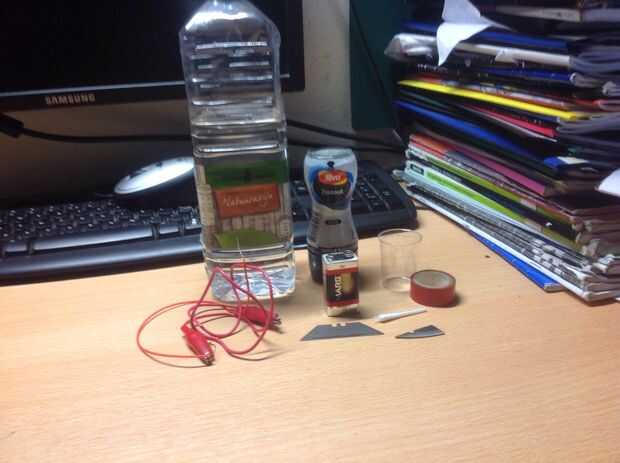 cuando grabe un circuito prototipo generalmente intento usar menos cloruro férrico que pueda. Esto significa verter sólo una fina capa de ácido en un recipiente plano y mantener la superficie de cobre sumergida en él.Me di cuenta de mantener el lado