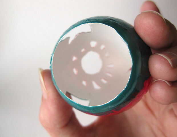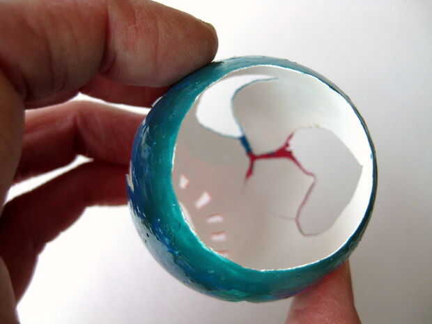 Compruébelo, usted sólo químicamente tallada una cáscara de huevo! Es increíble qué detalles se puede obtener de este proceso. Si tiene grietas, debe ser capaz de arreglar con un poco más esmalte de uñas. Sólo tenía una zona agrietada menor (véase las fotos) – fácilmente esta parcheado con esmalte de uñas, y solo podrias decirme si en el interior de la cáscara.
