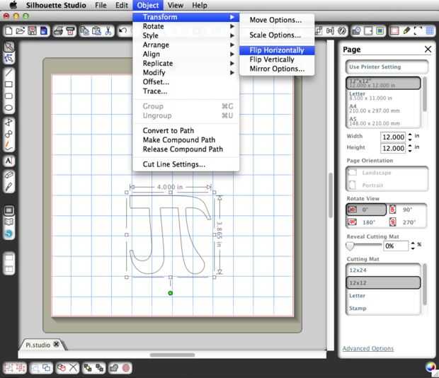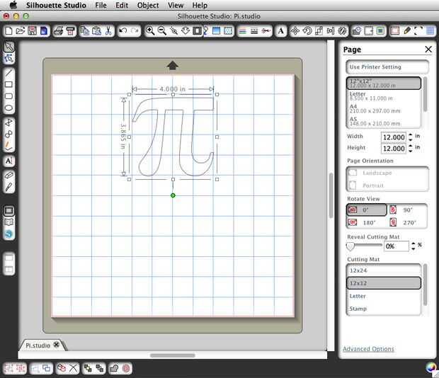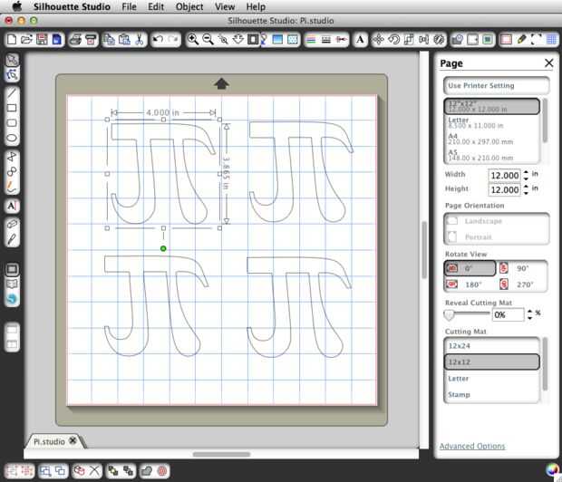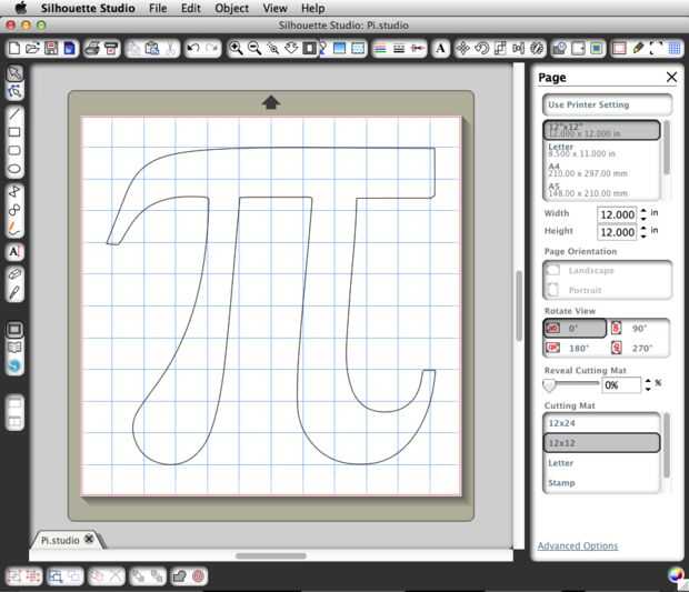 Abra el software de corte de vinilo (en este caso estudio de silueta) y abra el archivo Pi.dxf.