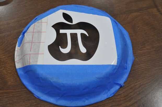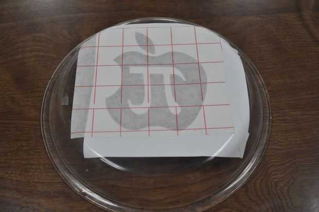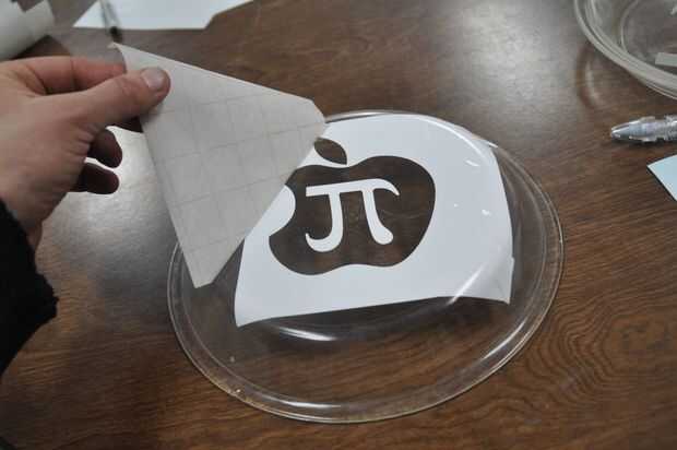 Una vez que la parte posterior de la tartera se enmascara completamente excepto el espacio negativo del logo de Pi, está listo para chorreo de arena.