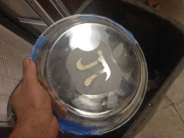 Después de retira el masking, lave la bandeja con agua y jabón y dejar secar completamente. Mientras que todavía húmedo, el patrón de grabado al agua fuerte no será tan legible. El grabado es un blanco mucho más brillante cuando está completamente seco.