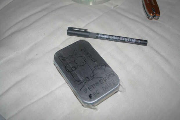 Tomar un rotulador u otras que se dibujan en la cinta, esbozo de su diseño. está bien ser un poco descuidado. Yo había dibujado en algunos escribiendo aquí, pero abandonado en el paso siguiente. Más adelante agregaré mi "mensaje". Estará cortando alrededor del diseño.