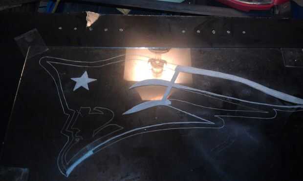 OK, ahora que usted tiene su diseño invertido sobre el papel, obtener mayor cantidad de luz sobre el proyecto como usted puede! Coloque el vaso sobre el dibujo y comenzar a grabar hacia fuera de los contornos en una velocidad lenta, tómate tu tiempo, no se apresure esto o usted habrá perdido tiempo y dinero!