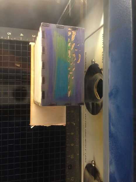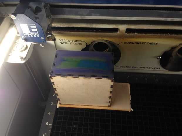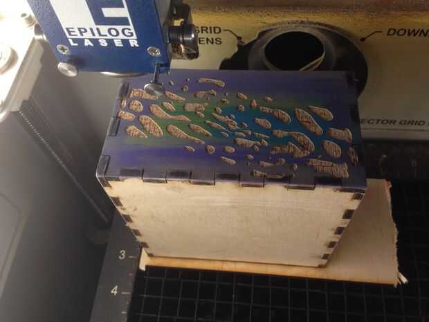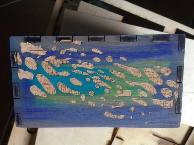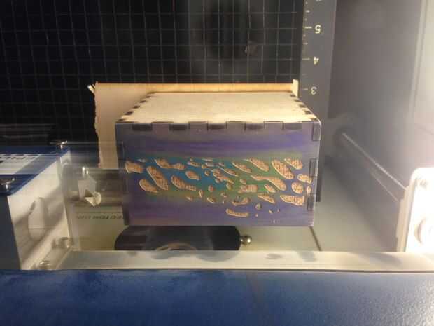 Cuando el frente de la caja pintada estaba seco, se fue grabado en láser.