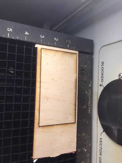 Para alinear la caja, una plantilla primero fue grabada en un trozo de madera.
