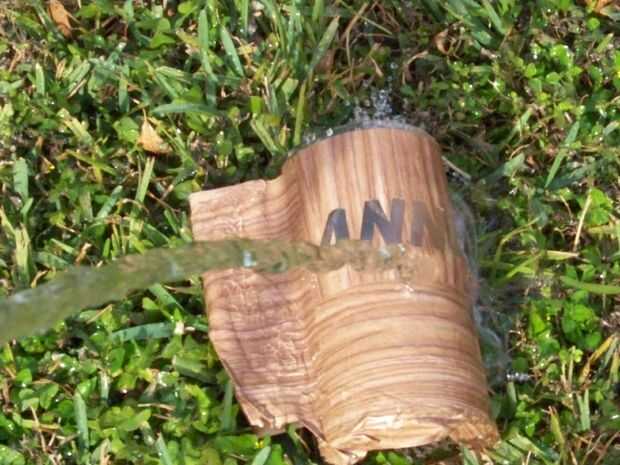 (Dejar desgranó los agujeros de la letra hasta la última, una vez que la taza está bien regada)