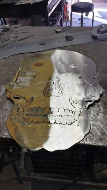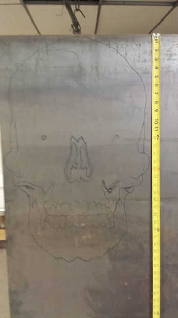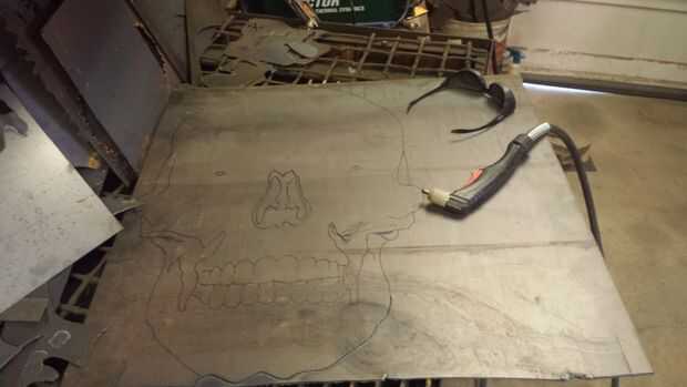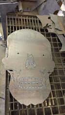 Para mi lona, comenzó con una hoja de 1/8" placa de acero y dibujó mi imagen sobre ella con un rotulador. Esta corte con un cortador de plasma, entonces químicamente eliminado la escala de molino y limpiar la pieza con un disco de la aleta en una amoladora. Me fabed algunas calas y soldada a la parte trasera, para colgar, entonces esto rociado con cuatro capas de pintura esmalte en aerosol y dejar curar durante una semana.
