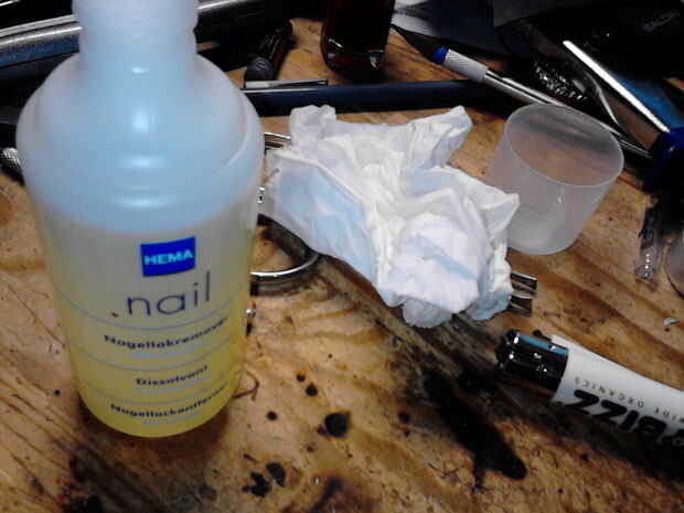 Ahora su finalmente tiempo para revelar su trabajo! tomar algunos removedor de esmalte de uñas / acetona, poner un poco en un tejido y comienza a quitar el esmalte.