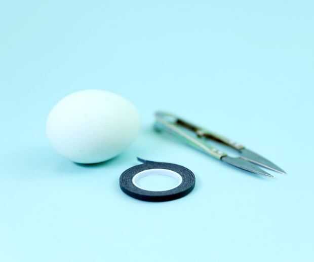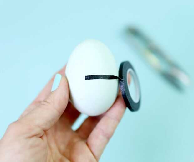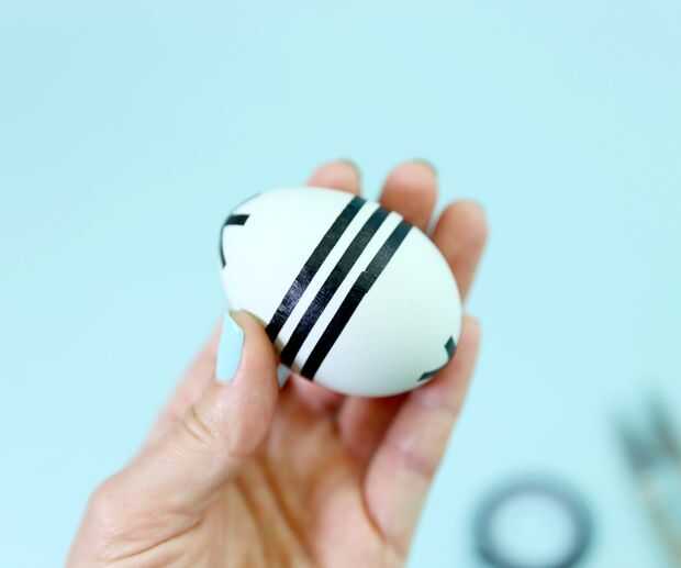 Utilice la cinta adhesiva fina para crear un patrón en la superficie de su huevo.