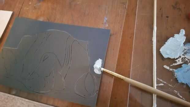 Una vez que han asegurado su bloque y el papel, la pintura en su primera sección de color. Puesto que ninguno de los colores una superposición, puede ir en cualquier orden de su deseo, si se trata de colores más oscuros a la luz, ligero oscuro, o algo intermedio.