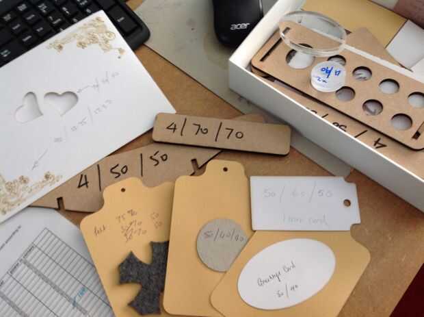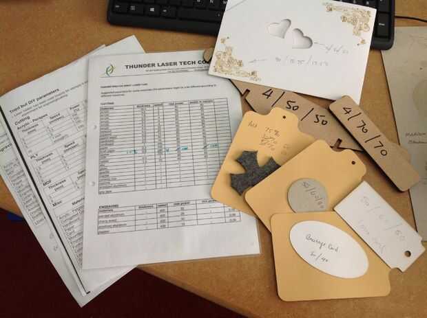 He empezado a llevar mi registro de lo que es la mejor opción para cada material que utilizamos. Lo hago en pequeñas tarjetas que tienen una muestra del material y los valores registrados en él.