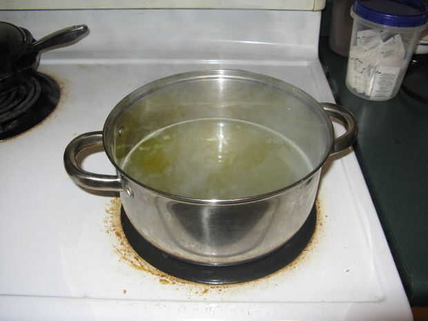 Poner el jugo de la salmuera en una olla en la fuente de calor y a fuego lento hasta que al menos la mitad o más del agua se ha evaporado. Desde salmueras más conserva en vinagre son una parte de vinagre y una parte de agua esta debe obtener el mismo porcentaje de vinagre como vinagre blanco.