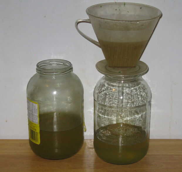 En este tiempo que usted puede notar su salmuera jugo tiene un color, en mi caso verde. Esto es una indicación hay otros productos químicos en el jugo que no sea de vinagre y sal. Verde indica probablemente la clorofila de los encurtidos. A esto se trata que la mezcla tiene productos químicos de misterio.