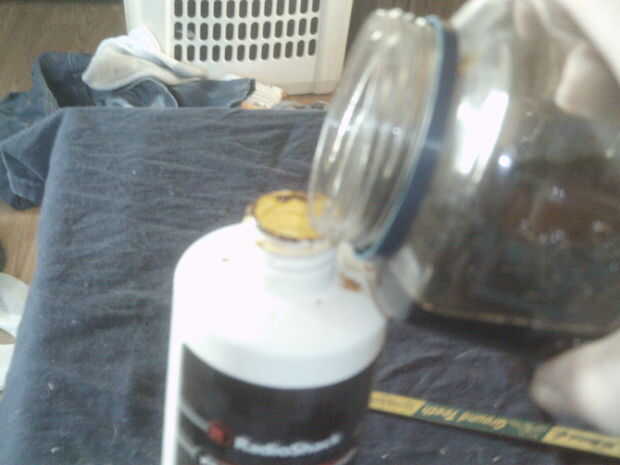 Después de 20 minutos incline la jarra alrededor de algunas maneras diferentes para ver si puedo juzgar hasta qué punto a lo largo de mi grabado. Después me conformo con lo bien grabado es que Vierta mi grabador en su contenedor de almacenamiento. Puesto que la solución de la aguafuerte come cobre y necesitas realmente para encontrar las pautas de su zona eliminación de tóxicos son la mayoría definitivamente no vierta que abajo el drenaje se comen hasta las tuberías!