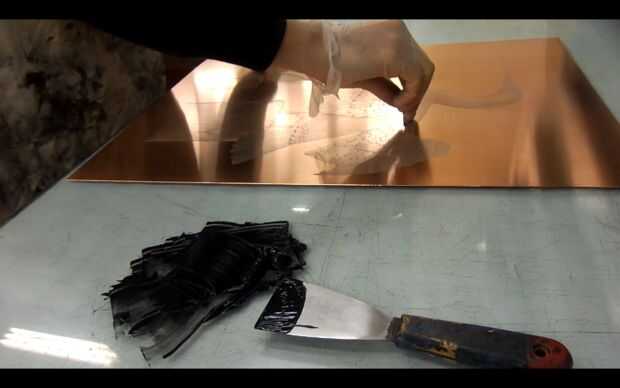 -La tinta se aplica a la placa de cobre con pequeños cuadrados de cartón. Una vez que la línea de trabajo ha sido completamente cubierto por la tinta que pueden empezar a frotarse con un paño de tarlatana.