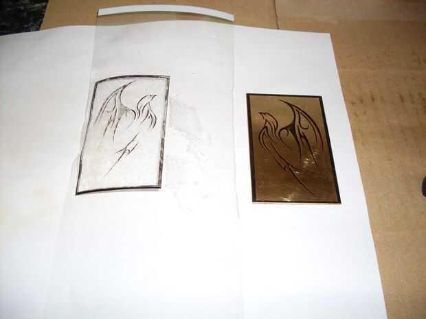 sin tocar el metal, que ahora estará muy caliente. Coloque un pedazo de papel de desecho sobre el acetato y presione hacia abajo una vez más, el bronce (esta vez a través del papel y acetato) con el hierro, manteniendo la plancha en movimiento. Tenga cuidado de no derretir el acetato. La transferencia de toner real sucede muy rápidamente y encontré necesario calefacción muy poco con este método - en la orden de 5 a 10 segundos. Quitar la plancha y pelar inmediatamente detrás el acetato con cuidado - esto debe hacerse mientras el latón y el toner está todavía caliente (que es diferente a si usas papel para transferirlo). Si dejas el fresco toner primero, llegará lejos con el acetato en lugar de restante en el bronce.