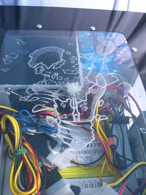 ok, bueno, aquí es el momento que has estado esperando (estoy seguro jejeje) aquí es mi computadora y mi grabado. pinté mi grabado con pintura brilla en la oscuridad, lo hace sobresalir y si alguna vez consigo una luz uv realmente a brillar como allí es ninguna mañana. Este no es el mejor trabajo de grabado alrededor por un largo tiro pero incluso una simple foto que una simple ventana parezca increíble!