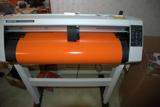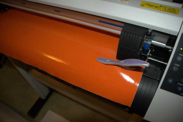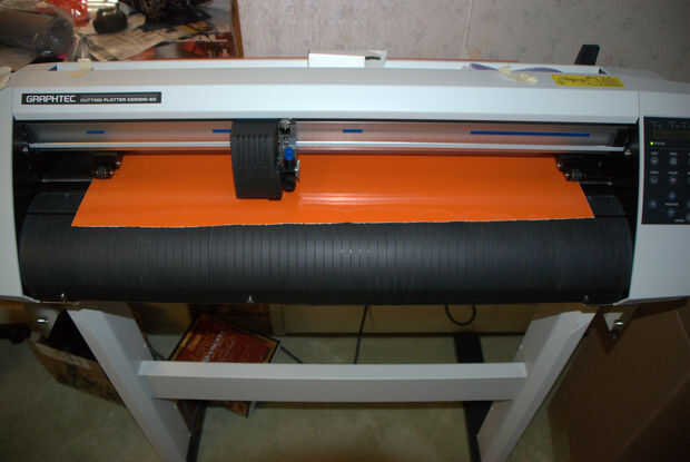Esperar a que la herramienta de corte a seguir los caminos y cortar la imagen en el vinilo.  Cuando se hace la cabeza de corte use un cuchillo para cortar la imagen final de la lista.