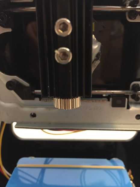 Una vez que la superficie esté todavía, debería ver el puntero láser en él. Use la protección ocular y empezar a ajustar el enfoque hasta que obtenga los mejores resultados. He adjuntado una imagen con el tornillo de enfoque que usted necesita para jugar con.