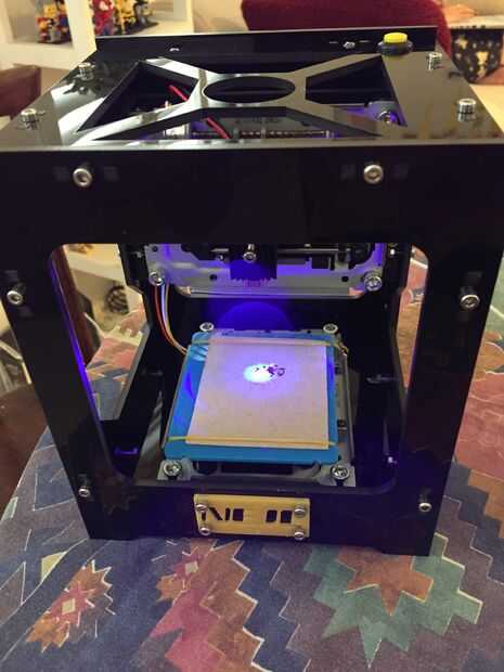 Otro clic en el botón mismo inicia el proceso de grabado. Aquí se debe evitar mirar directamente el láser, y solo tienes que esperar a que el proceso se realiza.