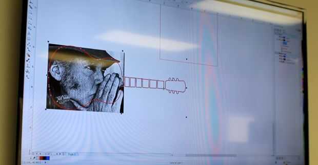Este paso se crea para asegurarse de que la imagen es del tamaño correcto para la guitarra actual. Un contorno de la guitarra fue creado para superponer la imagen para ver lo que exactamente se va grabado. Muy útil para hacer que la foto es del tamaño adecuado para ser grabado.