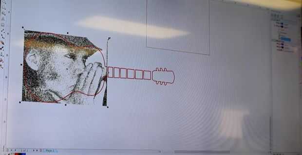 Puesto que la máquina trabaja en colores RGB, la imagen tuvo que ser convertida a blanco y negro mediante el ajuste de Jarvis. Este paso permite el software de la máquina a reconocer la imagen a grabar.