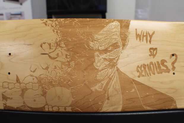 Este patín especial fue grabado usando una imagen del Joker. Sin embargo, cualquier tipo de foto puede ser manipulado con el fin de grabar utilizando un láser.