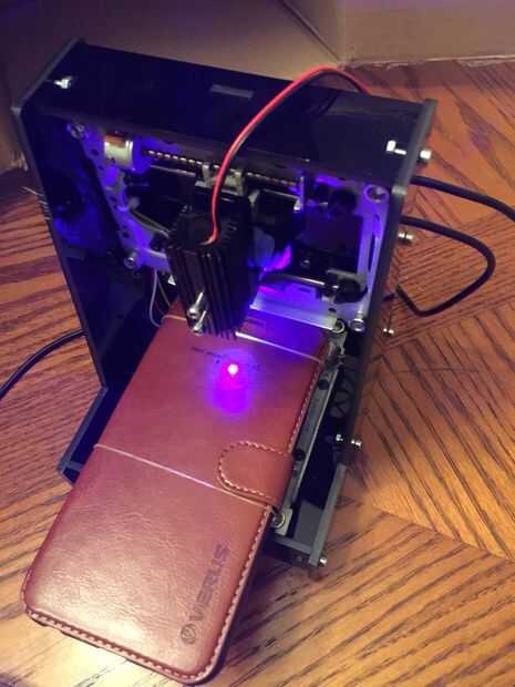 De cuero (o tal vez se trata de cuero simulado) graba muy bien y se ve muy bien. Incluso el pequeño texto que se muestra en las imágenes se puede leer claramente (aunque necesito gafas para leer la letra más pequeña para leer.) Los resultados son nítidos y limpios.