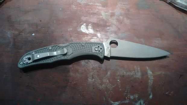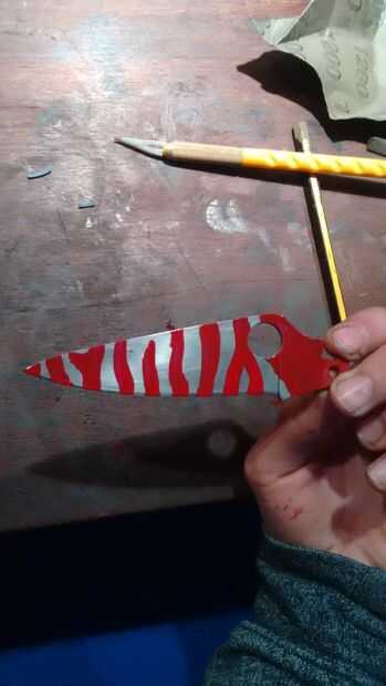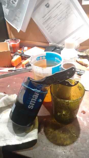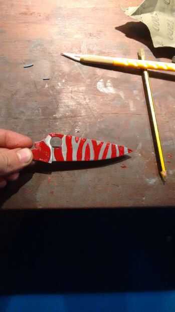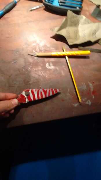 Fluido de encendedor y un trapo para limpiar la cuchilla y el clip entonces hacia el ácido, esta vez que saqué el clip en 45 minutos, esto no fue suficiente tiempo, supongo que por el tipo de acero pero la etch fue muy débil. Sin embargo la hoja en una hora y que funcionó a la perfección.