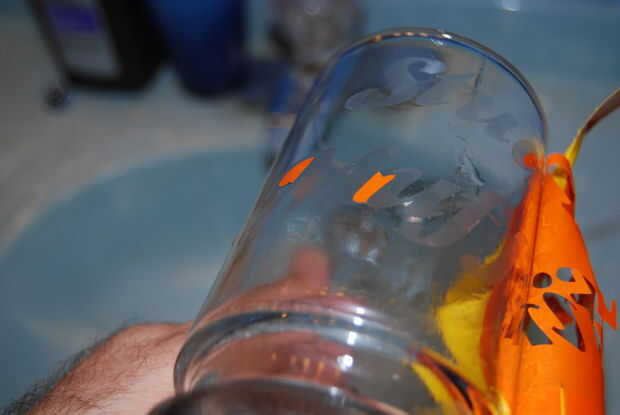 si está usando un láser para grabar vidrio, puede utilizar su obra de arte regularmente sin ningún problema. Sin embargo, si está usando un cortador del vinilo o cinta adhesiva para hacer una máscara para el grabado químico (como este) tienes que man
