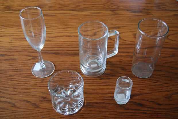 El vidrio debe tener lados que están tan cerca de la vertical como sea posible. Paredes curvas significan estirar la máscara de vinilo para eliminar las arrugas - es muy difícil hacerlo y distorsiona la máscara de vinilo. Flautas de champán no están mal. Jarras de cerveza y vasos de agua funcionan bien.