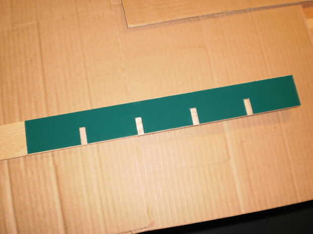 Como se muestra en el resto de las fotos, después puso la plantilla de plástico sobre las tiras de madera de Home Depot y marcado donde cortarlos. Hice los cortes con una sierra caladora de mano o sierra sable usando cuidado para hacer los cortes lo más recto posible. Uso un. 25" madera cincel para cortar la parte superior de la muesca. Como con la longitud de cada divisor, prueba las muescas de las piezas de divisor con frecuencia mientras corta para garantizar un ajuste perfecto entre piezas del separador de acoplamiento. Ajuste fino de las anchuras de ranura puede ser necesario utilizar papel de lija.