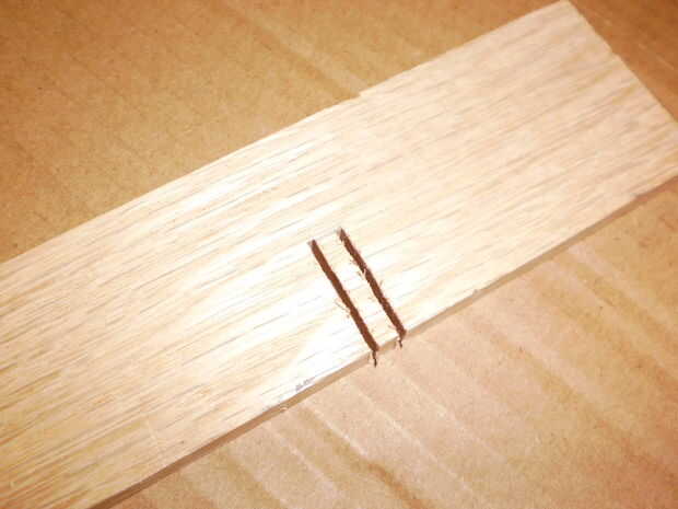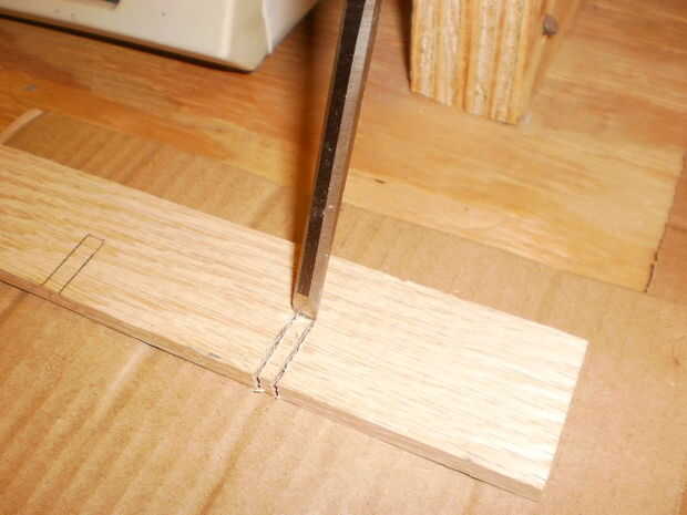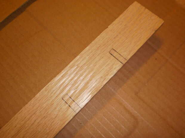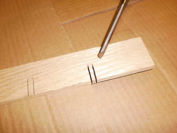 Afortunadamente, Home Depot vende piezas de roble rojo guarnecido, 48 "x 1,5" x. 25" así que todo lo que tenemos que hacer es cortar este en 12,25" longitudes y poner las muescas en ellos. Hacer los cortes de longitud para obtener una pieza completa 12.25 por lo que cabrá perfectamente en la caja sin necesidad de pegamento o fijación para sostenerla en lugar. Prueba de que las longitudes de las piezas del divisor para caben en el cuadro con frecuencia mientras corta para asegurar un ajuste preciso ajuste. Ajuste fino de la longitud puede ser necesario.