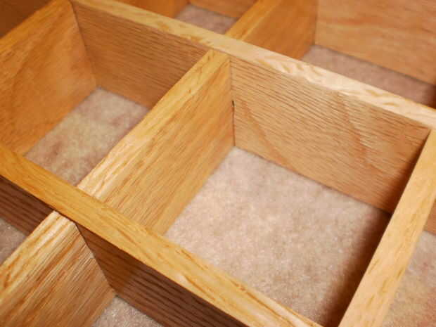 No conecte los divisores permanentemente en la caja en este momento porque iremos añadiendo fieltro a la parte inferior de la caja primero.