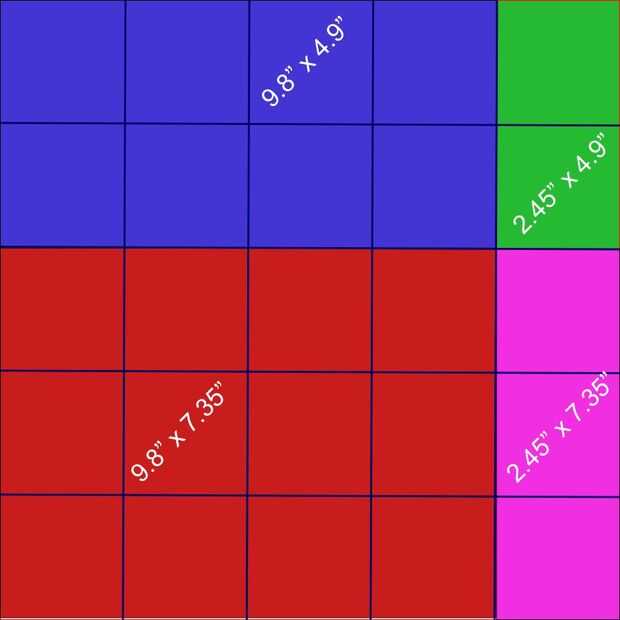 Para impedir que las piedras del rune se confunde alrededor en cada compartimento, se aplicará un revestimiento de fieltro a la parte inferior interior de la caja. He seleccionado piezas de fieltro color arena de tienda de artesanía de Michael. Desde entonces no he podido conseguir una sola pieza 12,25 "x 12. 25", utiliza 12" x 9" piezas y cortarlas para que las costuras caigan debajo del borde de una pieza de separador de ambientes. Aquí la primera foto es un diseño de Corel de los fieltros cortes basándose en el diseño de línea central divisor.