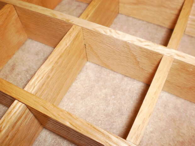 Después de instala el revestimiento de fieltro, puede conseguir la red de divisores en el lugar en el cuadro. La última foto muestra el fieltro instalada y separadores con el fieltros costuras ocultas.