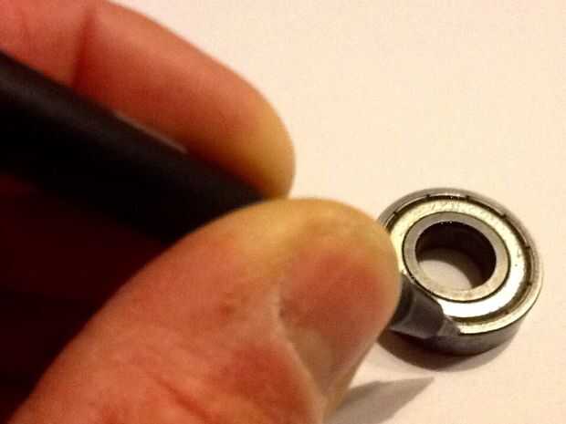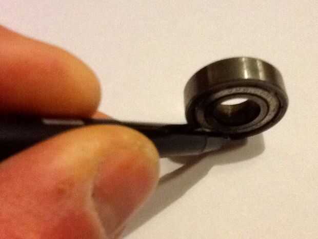 Antes de empezar con el dibujo en el rodamiento primero marcó el rodamiento con una pequeña línea y laminado en 360 grados a partir de esa línea para encontrar la circunferencia, así que pude calculo el espaciado entre las letras. Supuesto podría haber fácilmente calculé lo multiplicando el diámetro con pi, pi x 28 (no tengo un teclado griego antiguo... ;-)). Y dibuje el resultado (87.92) en línea recta. Pero bueno, yo no soy ese tipo de clase de teórica, y además de que el día de Pi fue una semana un go...