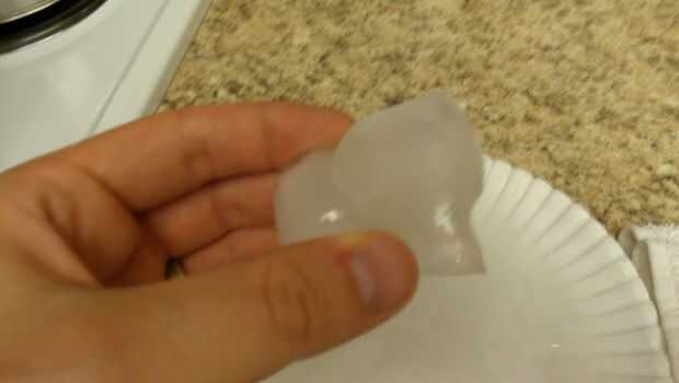Un Consejo útil. Me resultaba difícil mantener el cubo de hielo sin tocar la botella caliente. Descubrí que si colocan un nuevo cubo de hielo sobre el remanente del cubo anterior se fusionan los dos y el viejo se convierte en mango para una nueva. Ver las fotos de #6 y #7.