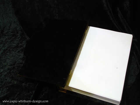 Hace ya un tiempo he posteado nada pero acabo de terminar haciendo un libro para un cliente basado en imágenes que me dieron. El libro está hecho de un producto de madera llamado MDF, grabado con una dremel, pintado a mano con hoja de oro y todos los tornillos y bisagras están hechas de latón macizo. El interior de la cubierta está forrado con terciopelo. Tomó bastante tiempo para hacer y no quiero hacer otro tan complejo. Las fotos no hacen a justicia como la hoja de oro brilla en la luz.