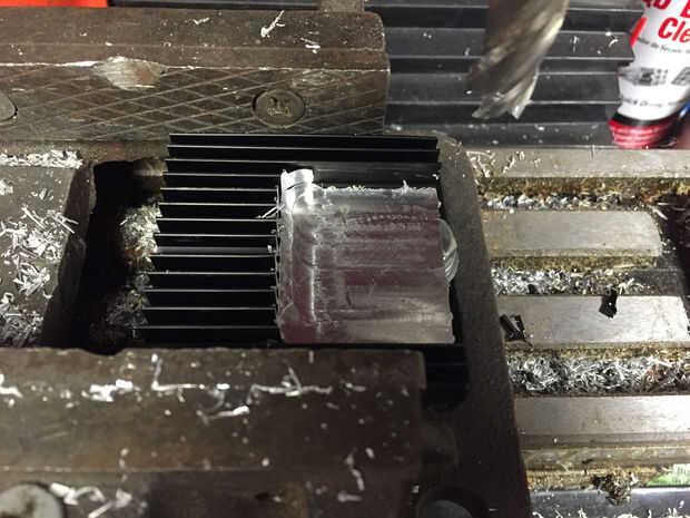 Pensé que empezaría con el eje Z ya que iba a necesitar algunos cortes de especial relieve en uno de los paneles para despejar el eje cuando. Podría haber sólo quemadas fuera menor la mitad de las aletas pero por qué no usar un molino para hacer más fácil. Si no tienes un molino que puede cortar aluminio una Dremel funciona muy bien...