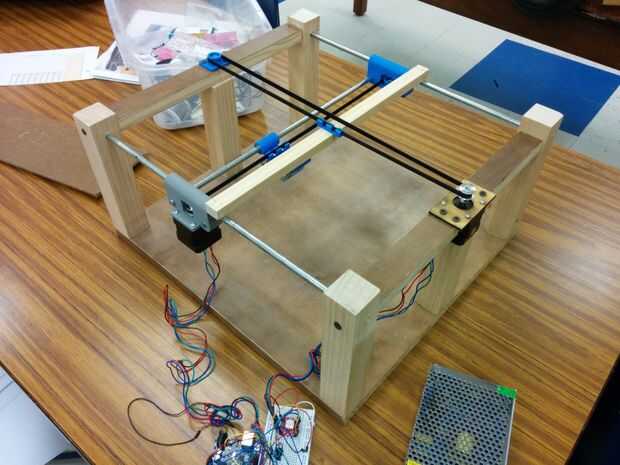 Conectado toda la electrónica temporalmente fuera del marco para la prueba (diagrama adjuntado). También usé un ventilador de ordenador para la ventilación. La máquina es controlada por un Arduino Uno corriendo grbl, y estoy usando el Universal Gcode remitente para comandos de gcode corriente. Para realmente convertir imágenes vectoriales en gcode, estoy usando Inkscape con el plugin gcodetools . Usé el perno de dirección eje para activar el láser encendido y apagado, ya que era fácil de hacer con gcodetools.